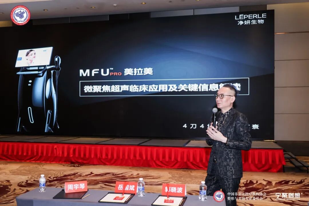 10月29日,非公协微创面部年轻化联合治疗培训班,净妍生物特邀北京丽都医疗美容医院石冰教授带来《MFUpro美拉美微聚焦超声临床应用及关键信息解读》,详细解读了MFUpro美拉美超声刀MFU微聚焦超声+SD协同聚点双重创新科技和4刀4炮多层抗衰实现真皮层、脂肪层以及筋膜层全面部皮肤层次的抗衰应用。