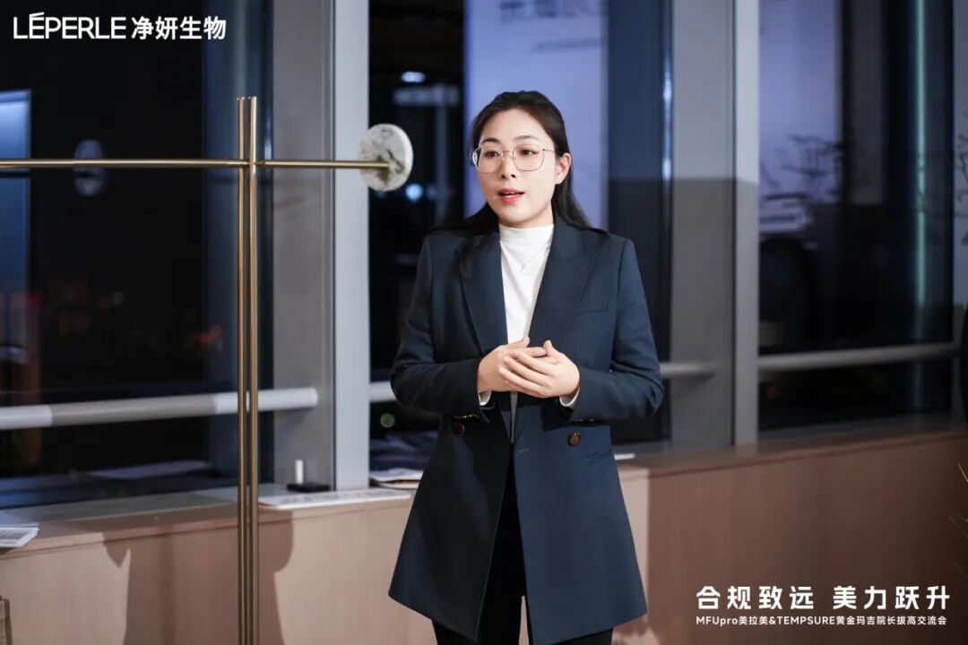 随后,院长们与净妍生物代表Elaine Zhou围绕美拉美超声刀和Tempsure黄金玛吉两款产品,在严格遵循行业监管要求的前提下,就技术原理与创新、临床应用案例分析、品牌建设以及合规发展路径与行业监管趋势展开了深入的圆桌交流。