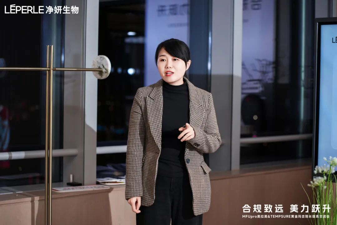 首先,净妍生物医学部负责人Elaine Zhou上台致辞表示:美拉美超声刀始终专注于抗衰美学的创新,致力于为求美者提供安全、高效、合规的医美抗衰解决方案;并对各位知名院长莅临本次交流会致以诚挚感谢。并介绍,未来净妍生物将启动“美拉美超声刀全国技术先锋100TOP”医师体系建设,携手行业专家,推动微聚焦超声技术的规范化普及与高质量发展;与此同时,她重点阐述了净妍生物战略合作新品赛诺秀·Tempsure黄金玛吉凭借4MHz单极射频技术,创新采用“高频低温”治疗模式,精准契合当下求美者对“舒适化、精细化、高效化”抗衰体验的核心需求。相信两大光电爆品协同发力,将持续推动舒适抗衰领域的进阶与突破。