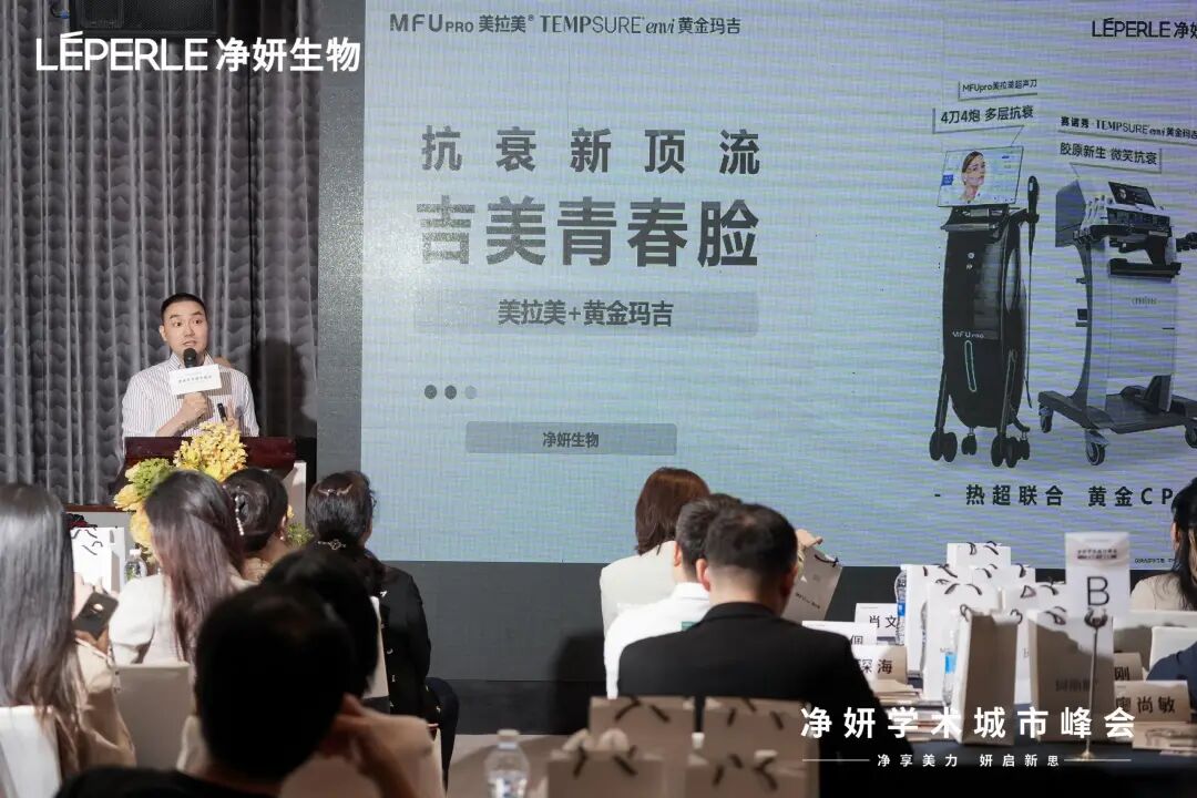 2025年12月2日,净妍学术城市峰会在中国·广州海航威斯汀酒店盛大举行!本次净妍学术城市峰会汇集了广州区域近50+名皮肤科领域的专家、行业领袖以及医美行业的顶尖品牌和知名机构代表人物,共同探讨净妍生物旗下两款爆品-美拉美超声刀和Tempsure黄金玛吉在面部年轻化方面的应用。